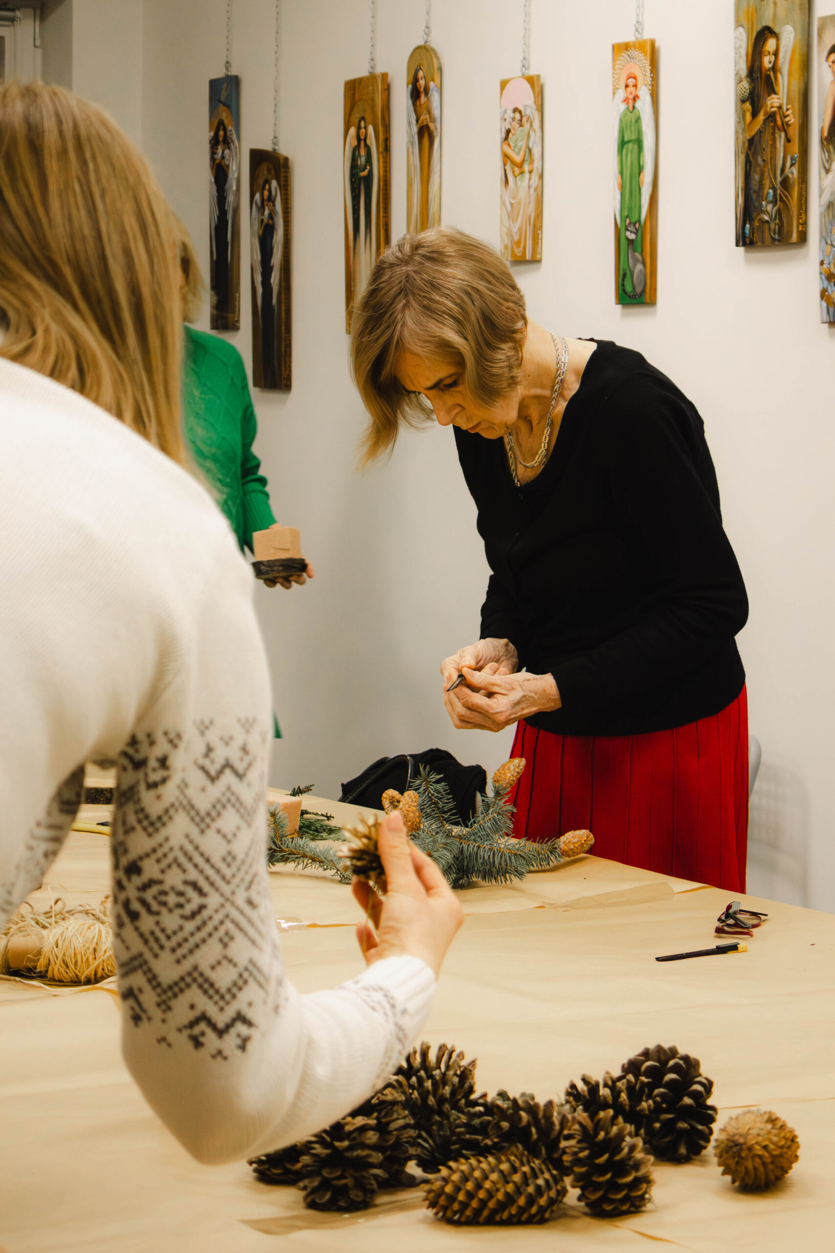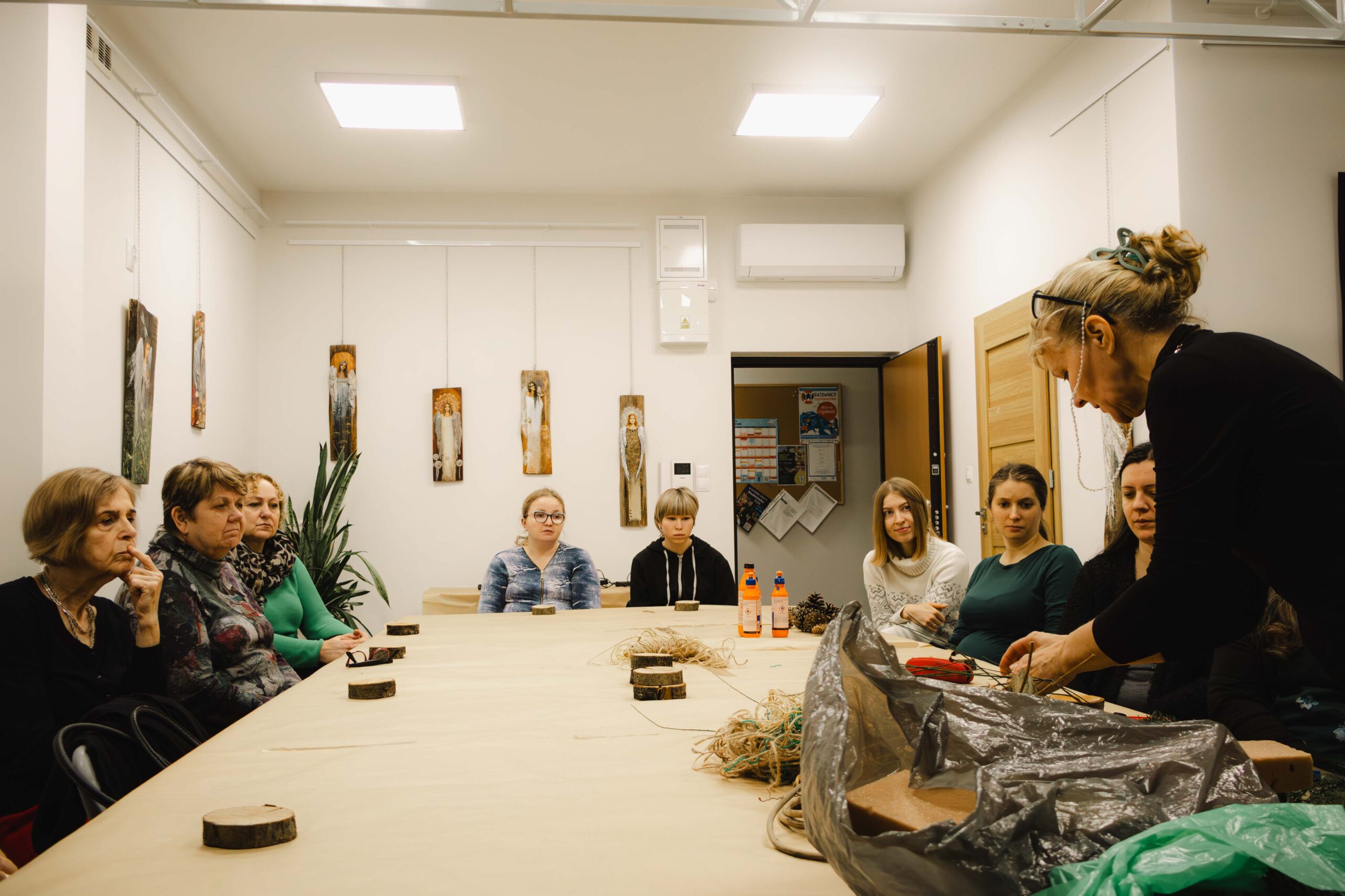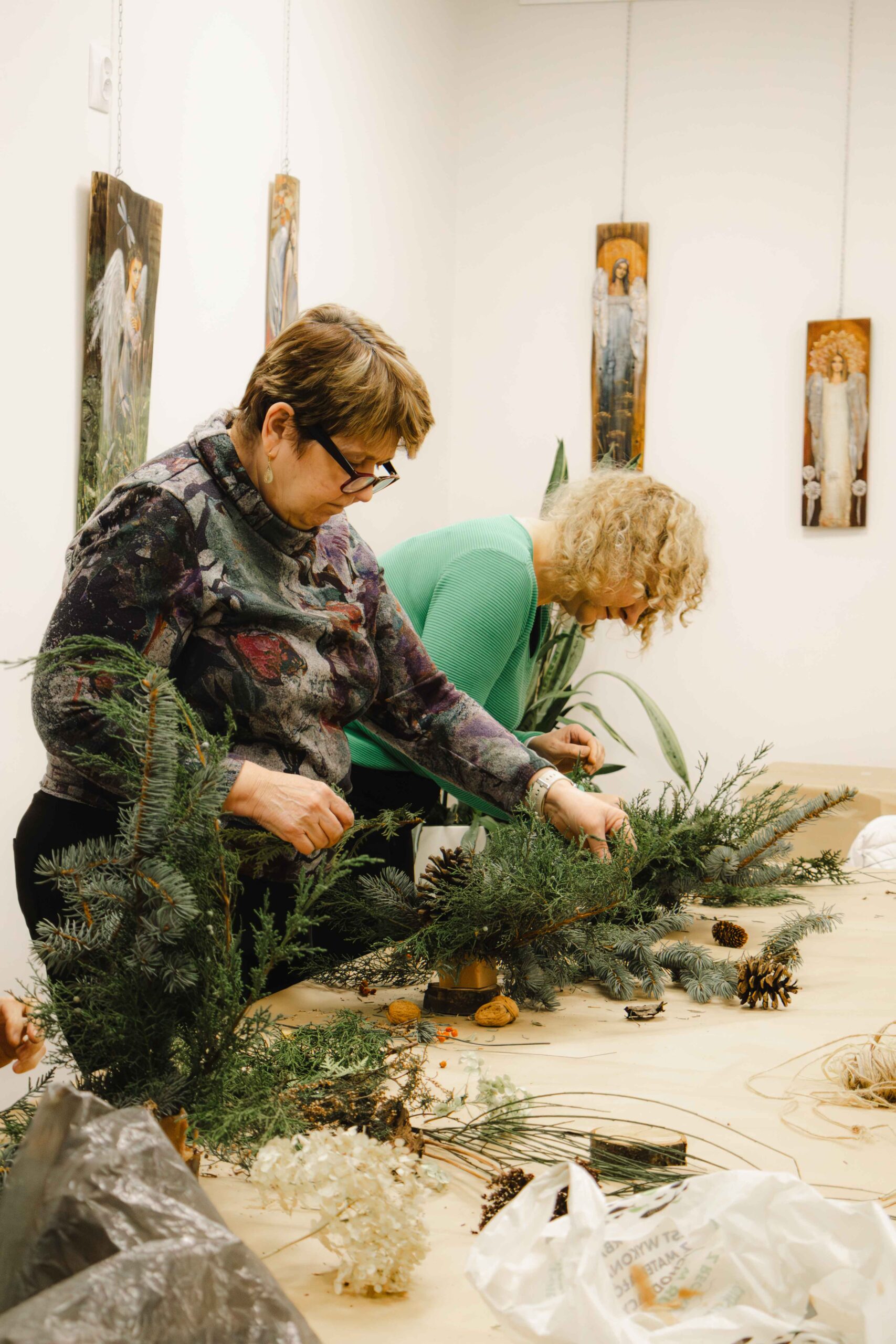 Uczestnicy mieli okazję własnoręcznie stworzyć unikatowe ozdoby świąteczne, które nie tylko wprowadzą magię świąt do domowych wnętrz, ale także stały się źródłem dużej satysfakcji i dumy z wykonanej pracy. Warsztatom towarzyszyła ciepła, twórcza atmosfera, sprzyjająca rozmowom, wymianie pomysłów i chwili wytchnienia od codziennych obowiązków.