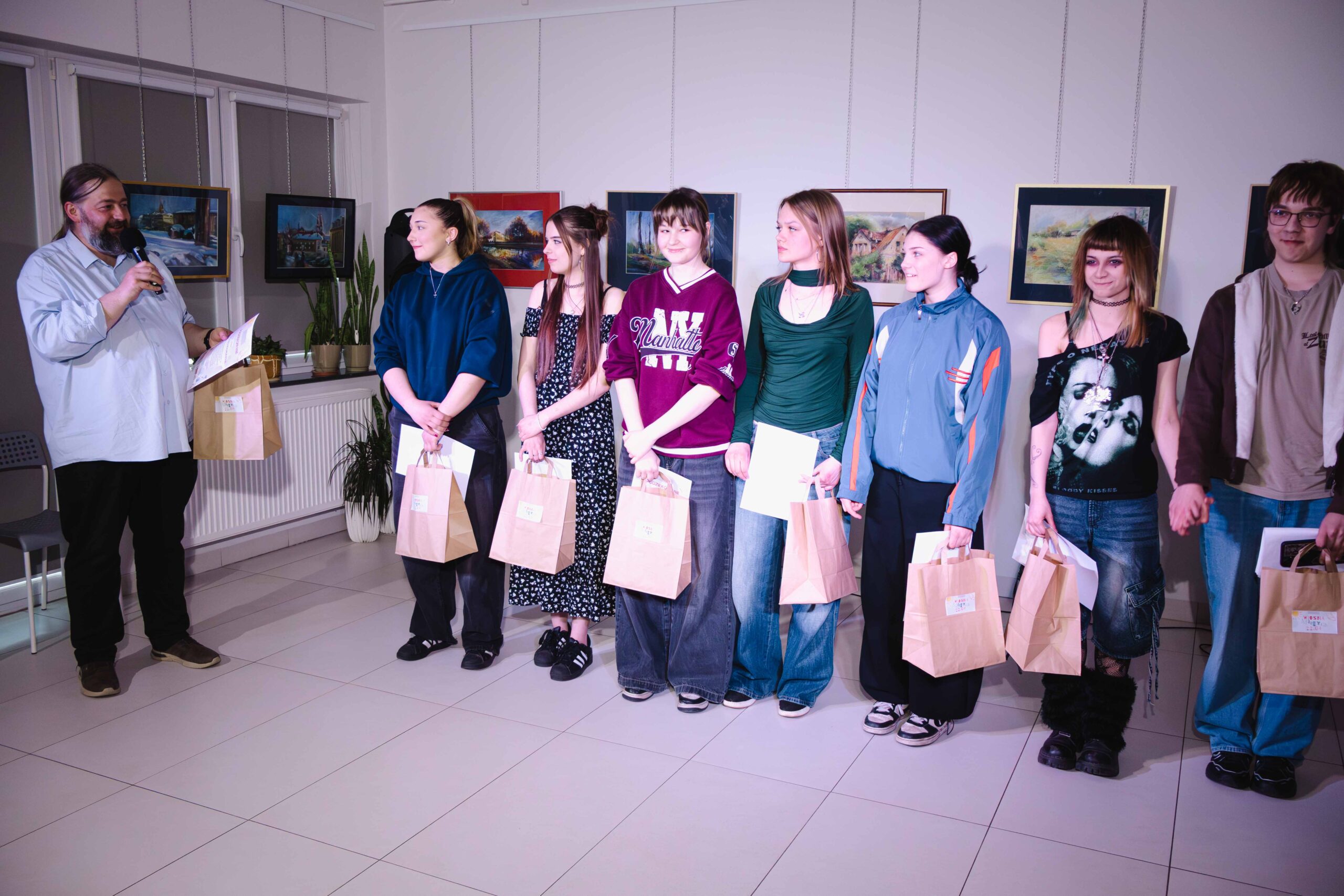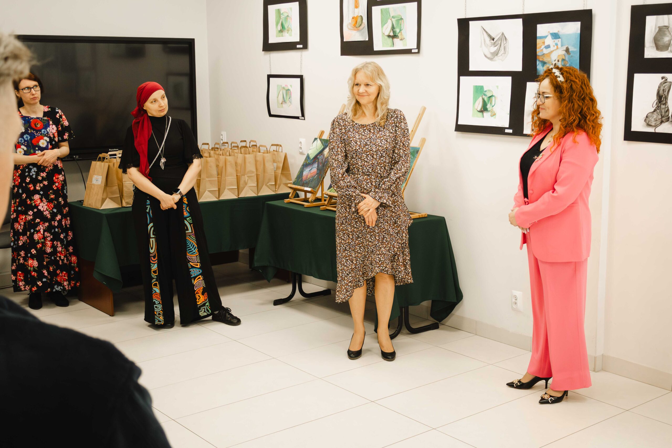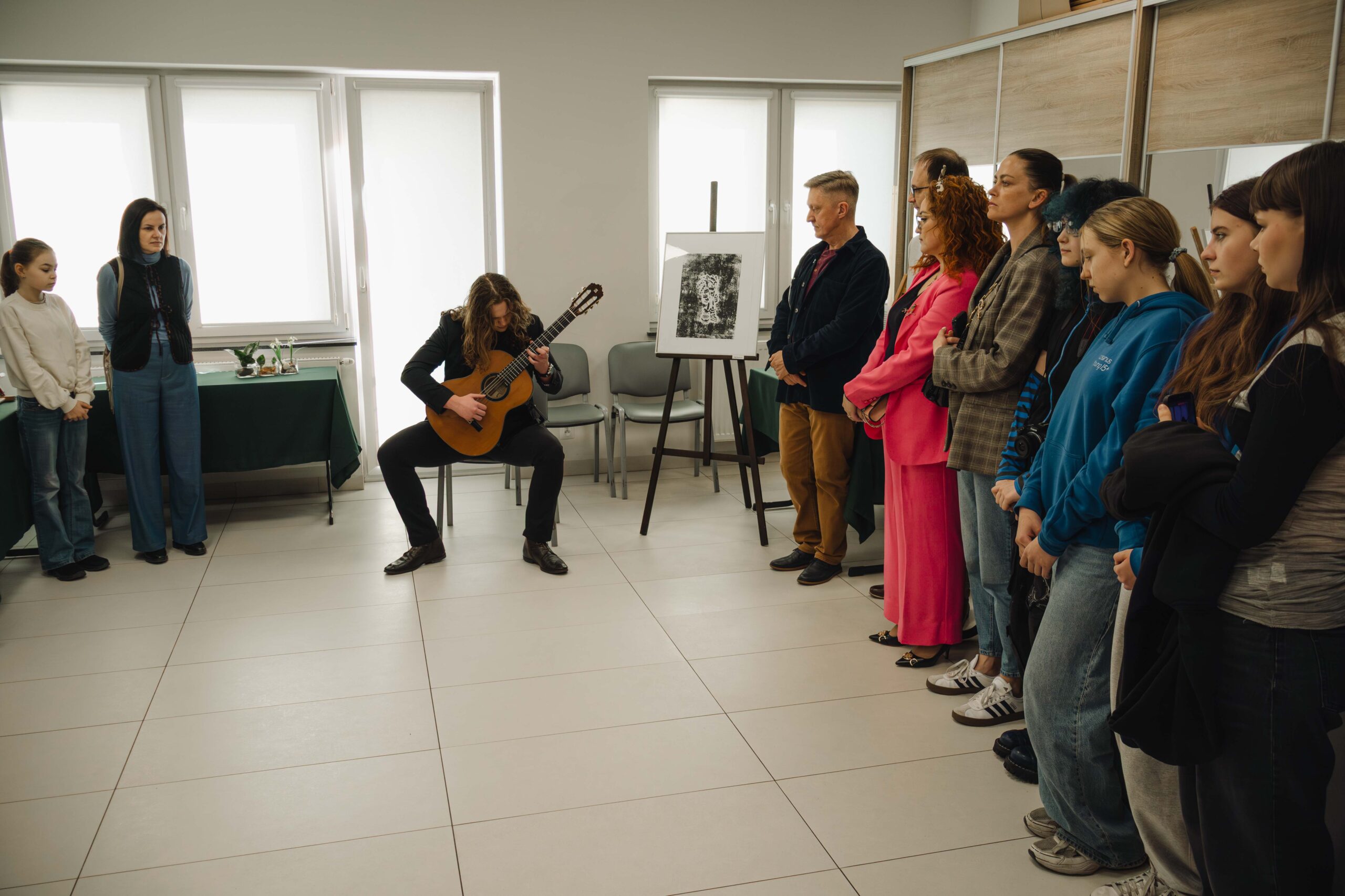 Dzień wypełniły wystawy, emocje i muzyka. Uczniowie Autorskiej Szkoła KLANZY – Liceum Ogólnokształcącego w Białymstoku oraz Liceum Sztuk Plastycznych Cosinus Young ART zaprezentowali swoje prace – różnorodne, szczere i tworzone bez schematów. Nie zabrakło też stoiska Przypinki Wafla oraz wystawy „Romkowe rozmaitości” Romualda Łapińskiego z Pracowni Działań Kulturalnych KLANZY.