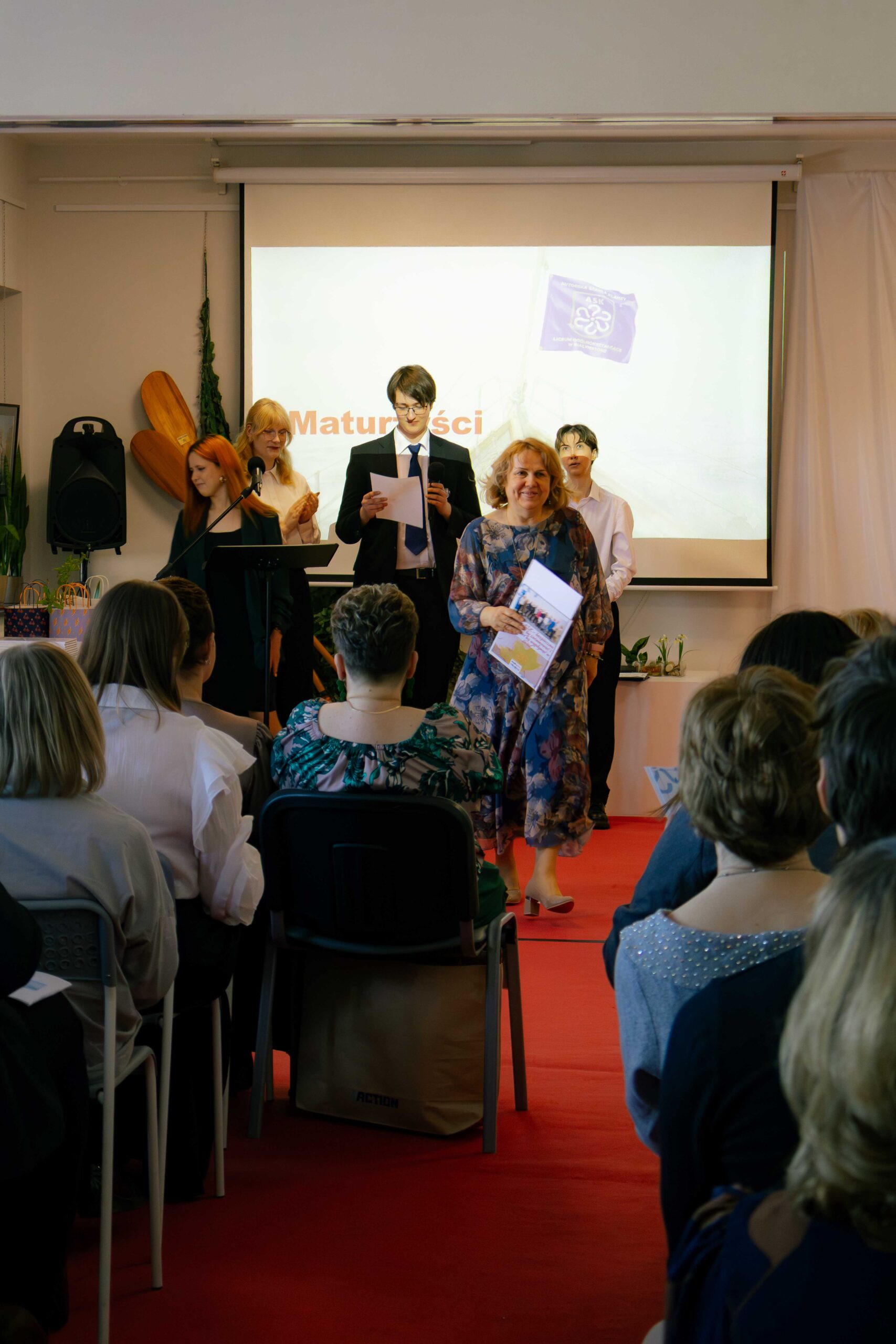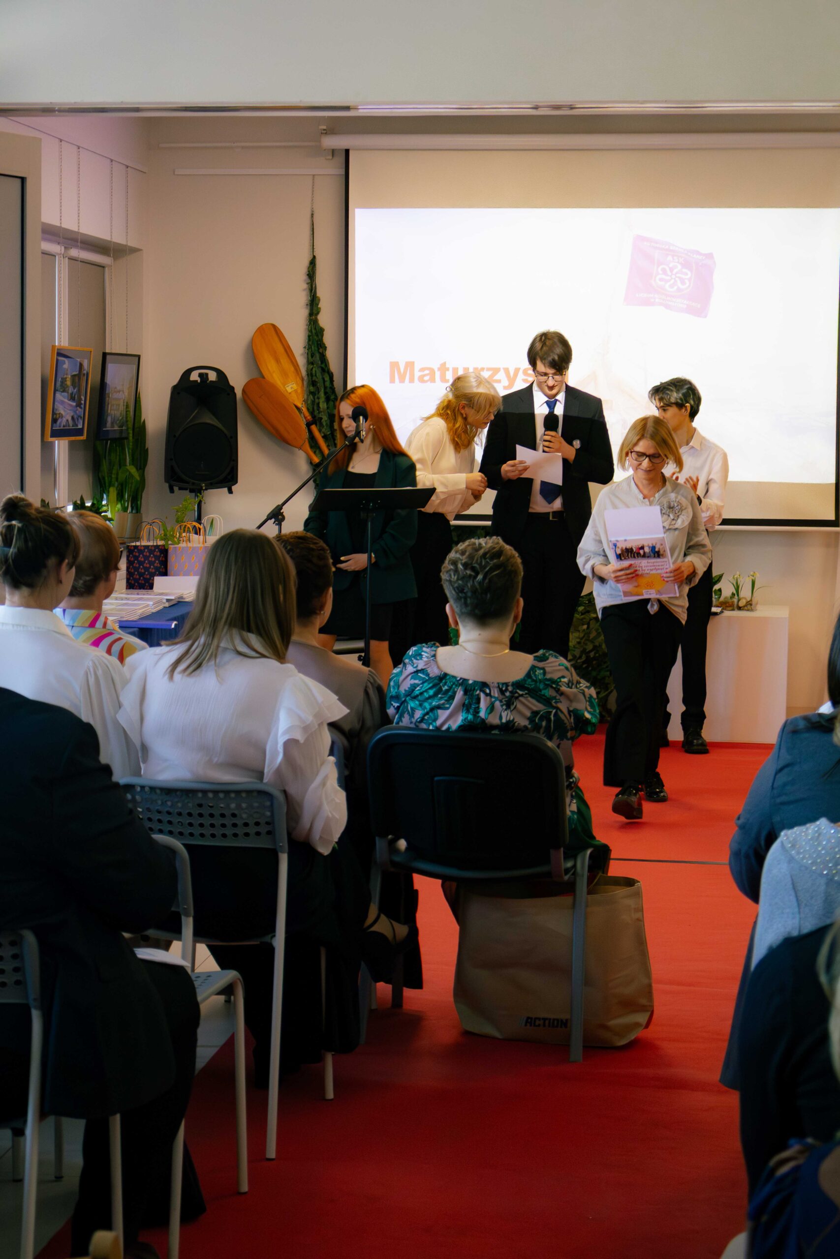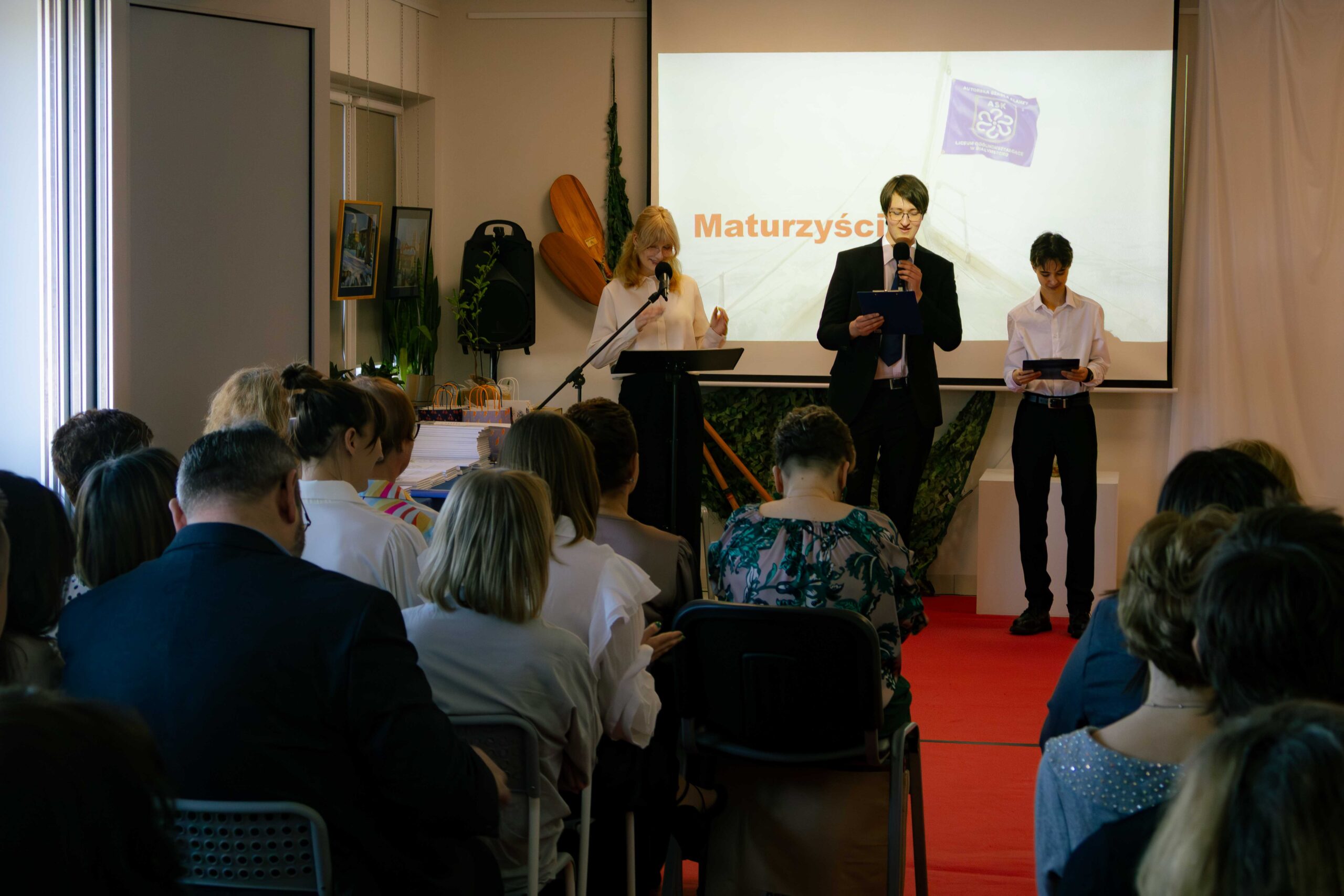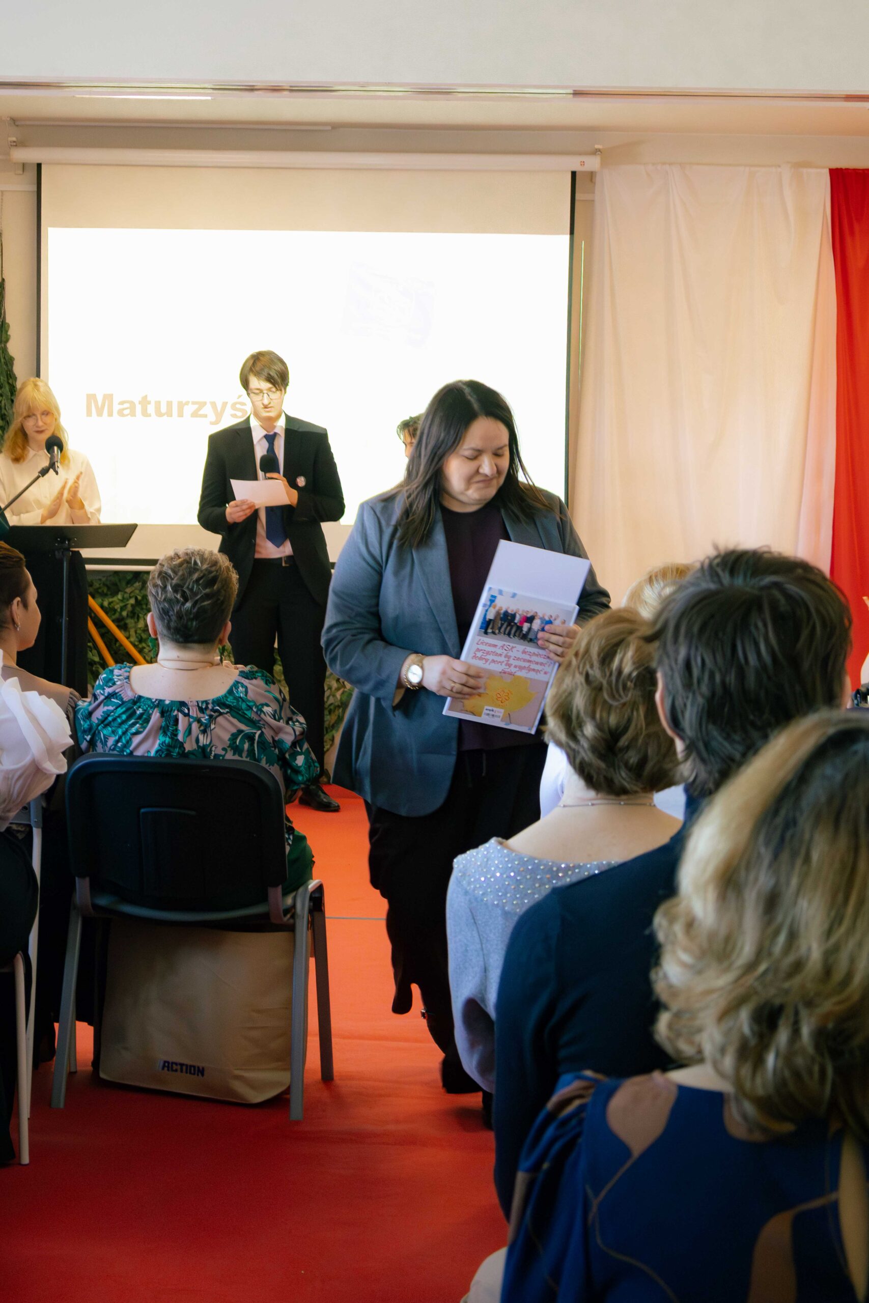 Uroczystość rozpoczęła się od symbolicznego przejścia Absolwentów po czerwonym dywanie – jako wyraz podsumowania ważnego etapu i wejścia w nowy rozdział życia.