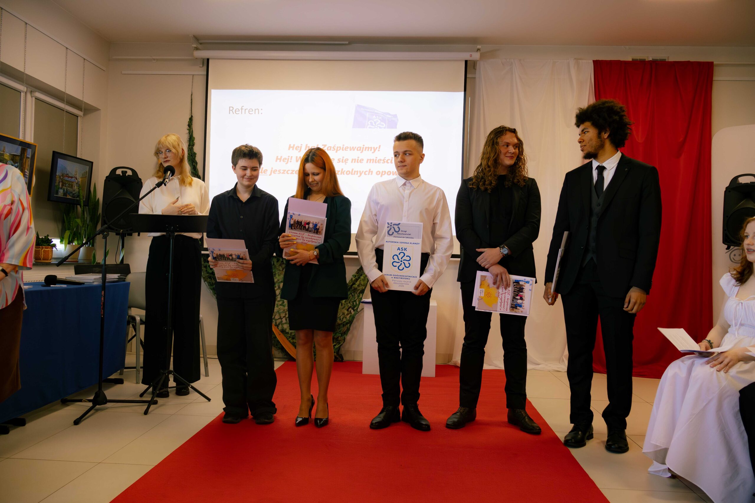 Każdy z Absolwentów został uhonorowany indywidualną, przygotowaną specjalnie na tę okazję piosenką – jako forma podziękowania za obecność, zaangażowanie i współtworzenie szkoły ASK.